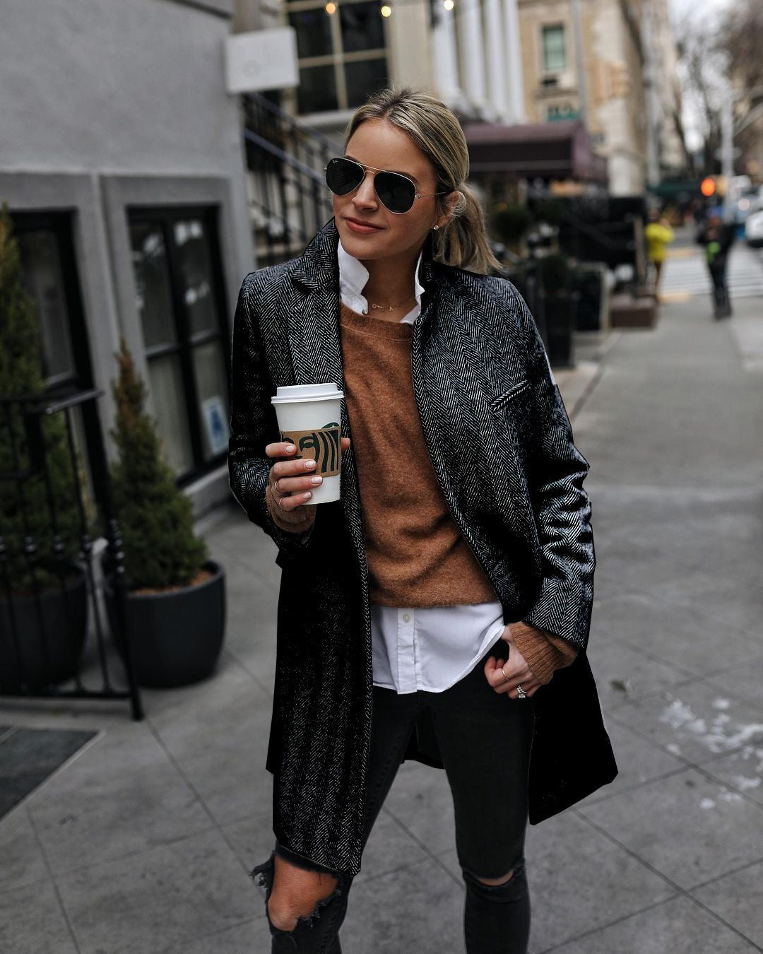 Long Women's Coat with Buttons – Structure Coat with Notch Collar